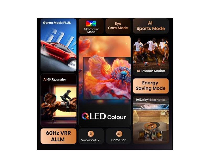 Ekran: | | Veličina ekrana: 55 inča (140cm) Rezolucija: 4K Ultra HD (3.840 x 2.160) Tip ekrana: QLED Nativni kontrast: 3.800:1 Osvežavanje: 60Hz Odnos stranica: 16:9 Uglovi gledanja: 178 stepeni horizontalni, 178 stepeni vertikalni Ostalo: 4K HDR Immersive, HDR, HDR10, HDR10+ decoding, HLG, Odziv 8ms, Quantum Dot tehnologija, Smanjivanje MPEG šuma, Wide Color Gamut |